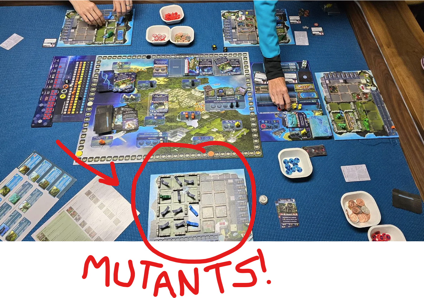 I love this board game 3000, and even though I didn’t win this time, I did get a T-rex early on and that was awesome. Our friend, Frank, actually won—with a mutant strategy! I’ve never seen anyone win with a mutant strategy OR fill up their entire park, but he did it, with like zero reputation! Well played, Frank.